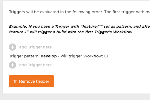 While adding your triggers you may have noticed a couple things: 1) Triggers can be added in any order you desire and 2) when creating a trigger you have the option to select whether a pull request triggers the workflow. Let’s talk about these.
